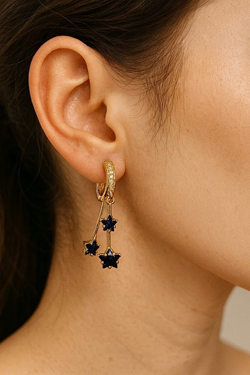 Crafted with meticulous attention to detail, these earrings are finished with an anti-tarnish coating, ensuring their timeless elegance remains intact. Perfect for an evening of sophistication or a special occasion, the Celestia Midnight Star Drops offer an extraordinary touch of luxury, capturing the enchanting beauty of the stars above.
