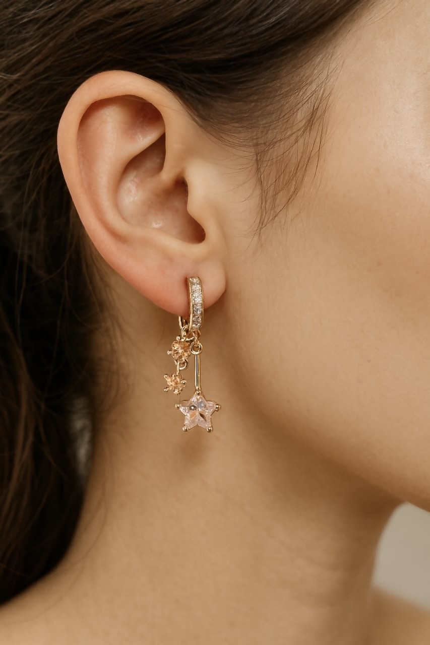Finished with an anti-tarnish coating, these earrings ensure enduring brilliance, preserving their pristine shine over time. Whether worn for an evening affair or as an everyday statement of refinement, the Celestia Stellar Drops exude timeless luxury, making them an essential addition to any jewelry collection.